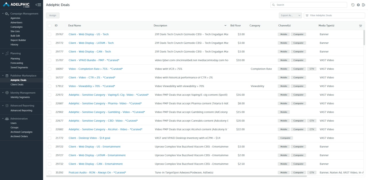 To activate a deal to be bought by Adelphic through Commerce Grid, use the following steps.
