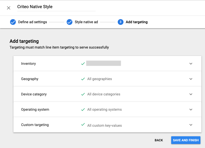 Now you can create the first line item. The goal is to create one dedicated line item per different CPM price band based on this first line item.