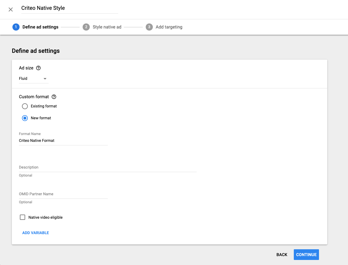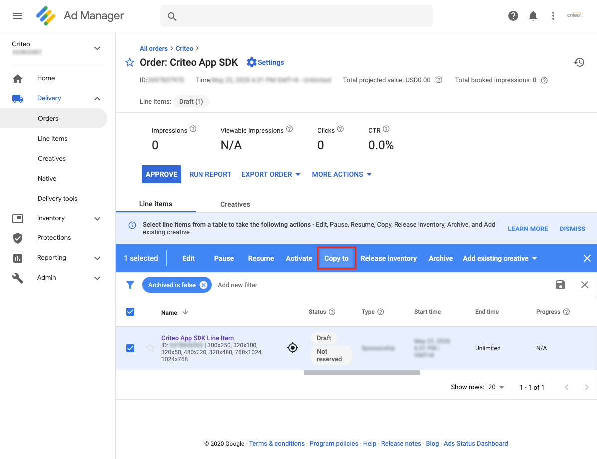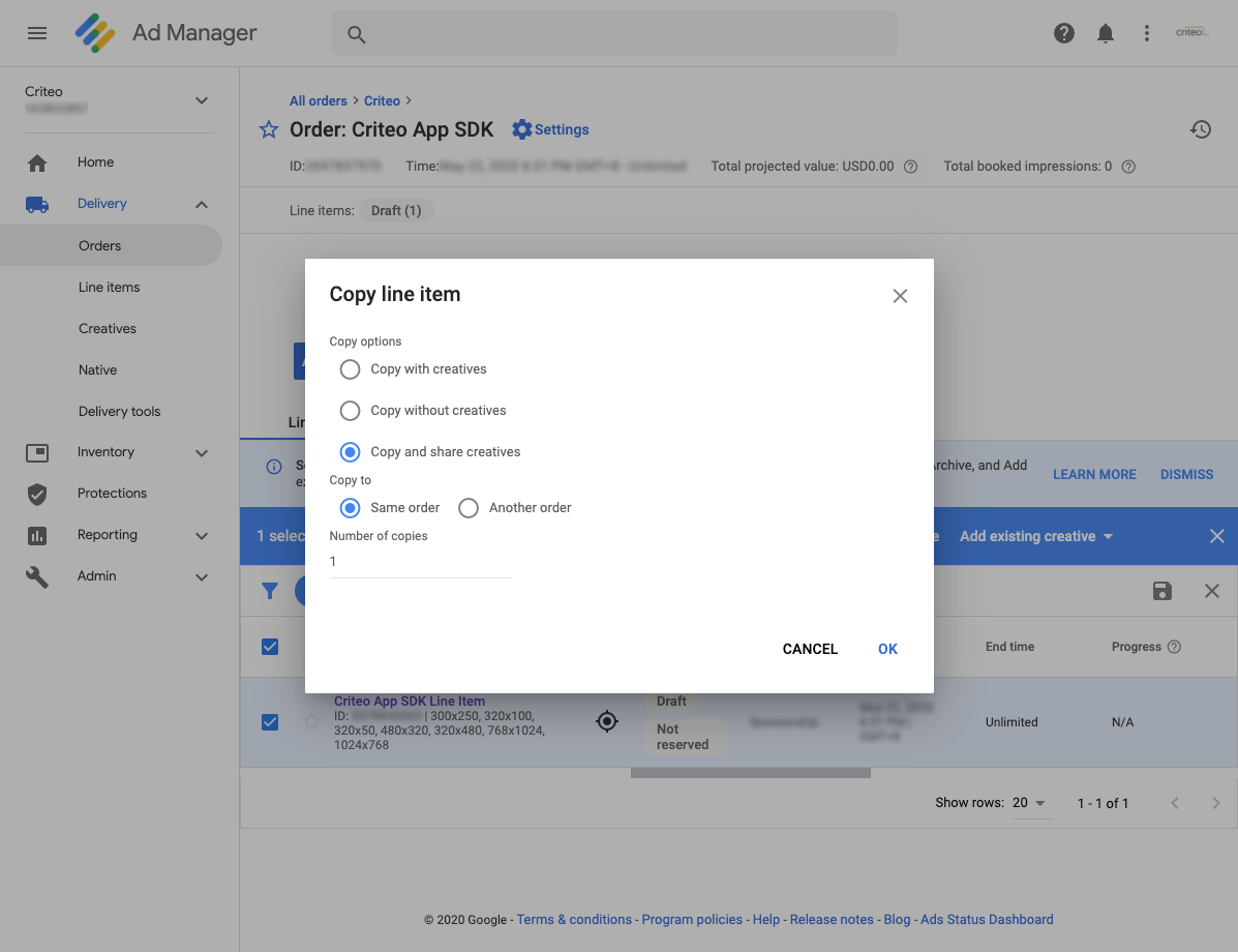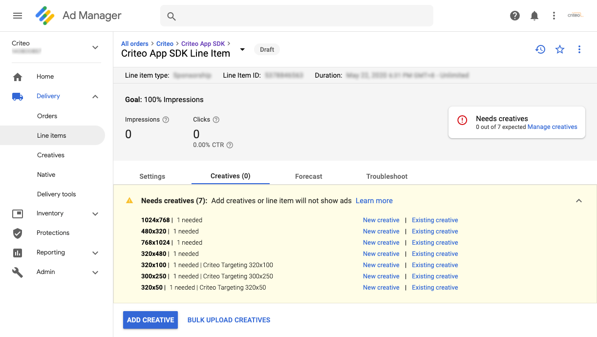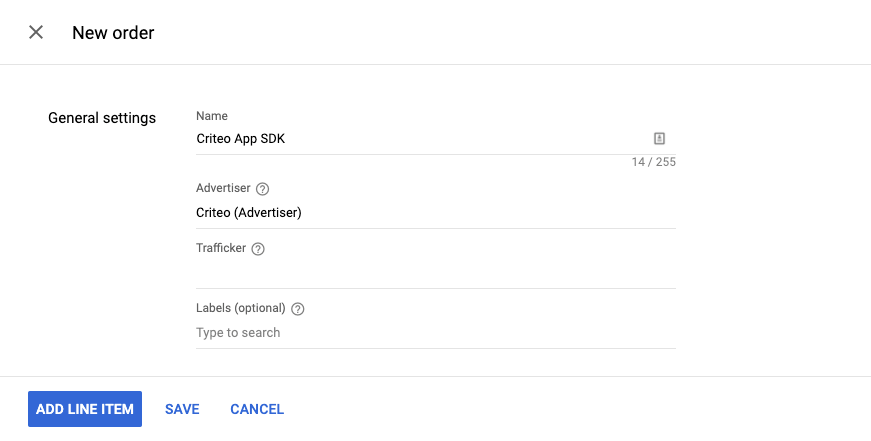 Name: Use a self-explanatory name like Criteo App SDK Video Line Item