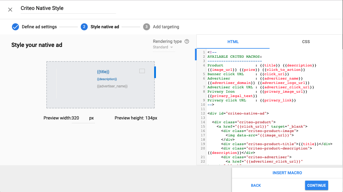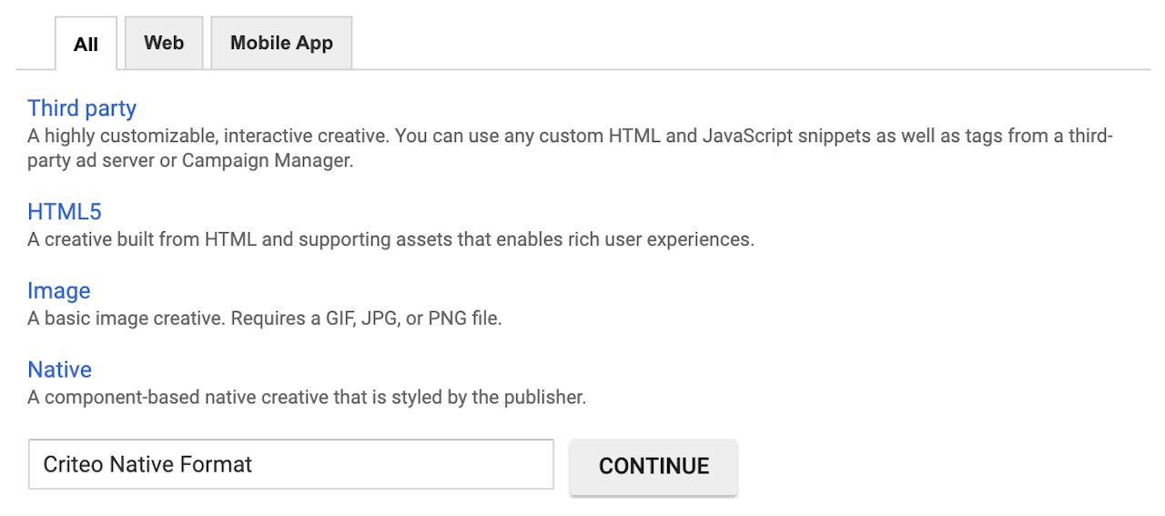 You will then be able to use crt_cpm to let Criteo participates in your bidding ad server, crt_displayUrl and crt_size to render the banner when Criteo wins the auction. In a standard ad server setup, these 3 values are set as keyvalue targeting.