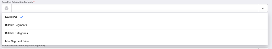 Data Segment setup: As a data owner/seller, on an individual segment you can define the “Data Fee Calculation Formula” as Max segment Price. This will always take the higher amount when multiple segments are used. For example, for AND statements it would be Segment A ($.50) AND Segment B ($1.00) means you will be charged a $1.00 data fee. And for OR statements, it will still evaluate whatever segment is used Segment A ($.50) OR Segment B ($1.00), and charge based on that.