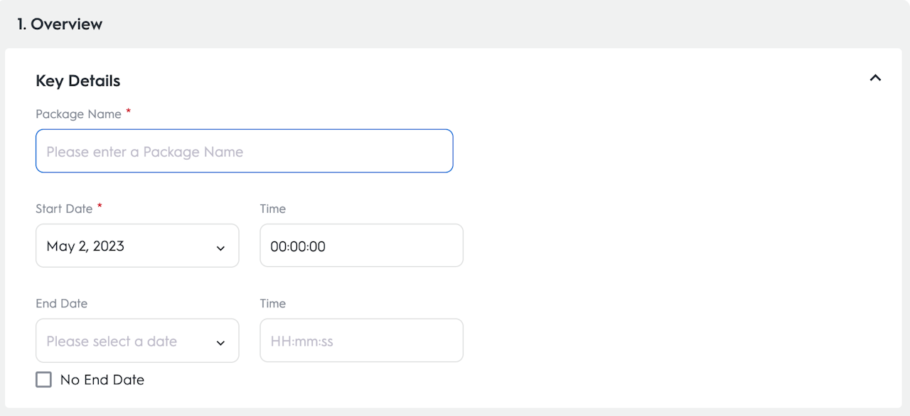Package Name: The name of your deal as it will appear in the UI