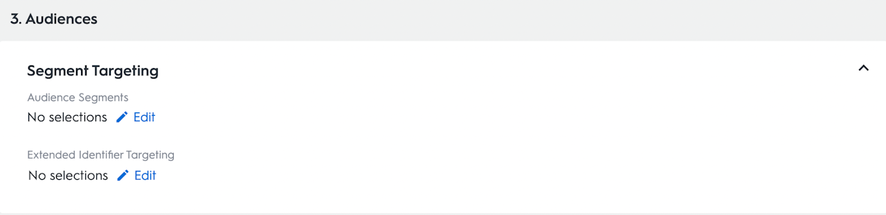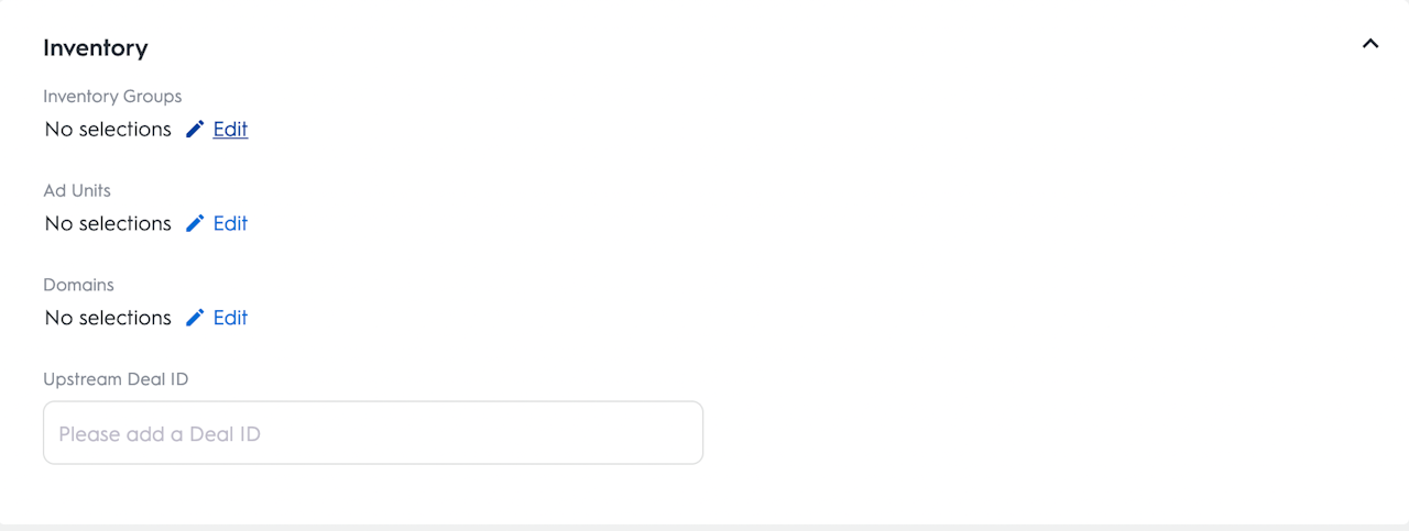 Audience Segments: Selecting "edit" here will take you to the Commerce Grid Data Marketplace, where you can select from a broad range of first- and third-party data segments to apply to your deal. Applying data to your deals that align with advertiser's needs can make your deals more attractive and valuable to buyers.
