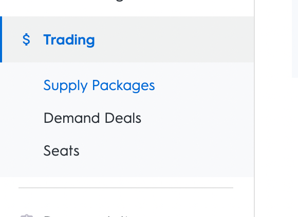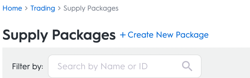 Log into the Commerce Grid UI. From the left-hand menu bar, select "Trading" and then select "Supply Packages".