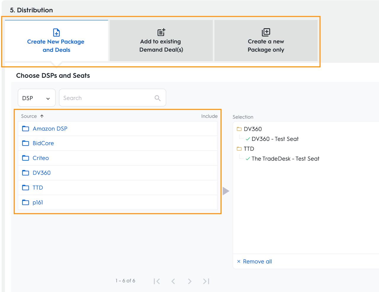 When selecting which DSP(s) you'd like to distribute to, please note that DV360 and TTD are the only Deal Sync-enabled partners at this time.