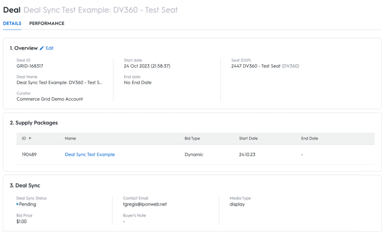 Deal Sync solves these shared challenges by offering an integrated solution that automatically synchronizes deal setup between Commerce Grid and a compatible DSP, surfacing deal IDs and setup parameters for a deal quickly and easily, directly within a buyer's native workflow.