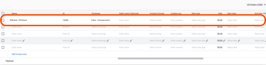This section explains how to set up and target Commerce Grid deals within the DV360 UI.