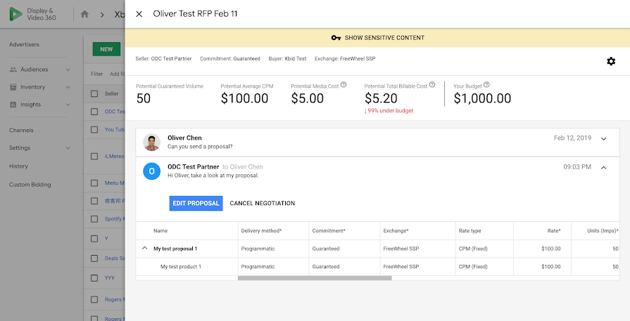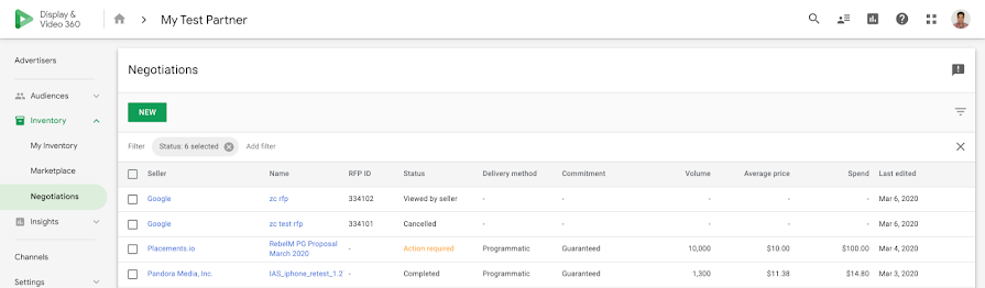 • In DV360, the deal appears under My Inventory → Negotiated Deals.