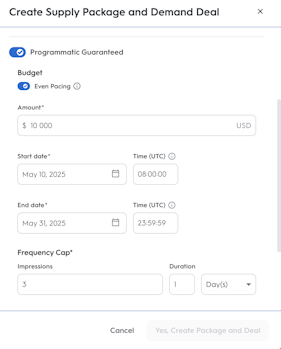 • In the Demand Deal modal, enable the Programmatic Guaranteed toggle.