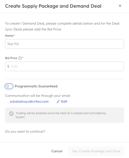 • You can create PG deals directly in Commerce Grid, then sync them to your DSP seat.